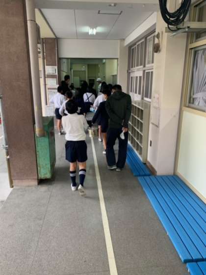 1年生は、今日習った英語をさっそく使って「ごちそうさまでした。ミソ スープ、最高」と給食調理員さんにあいさつをしていました。