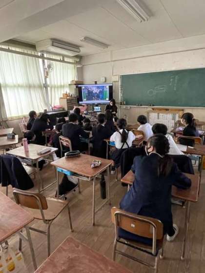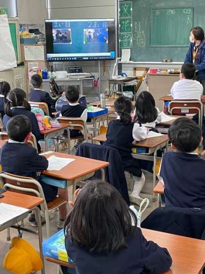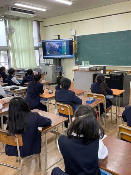 今朝も雨が降っていましたが、児童集会は各教室で大型モニターを見ながら行いました。