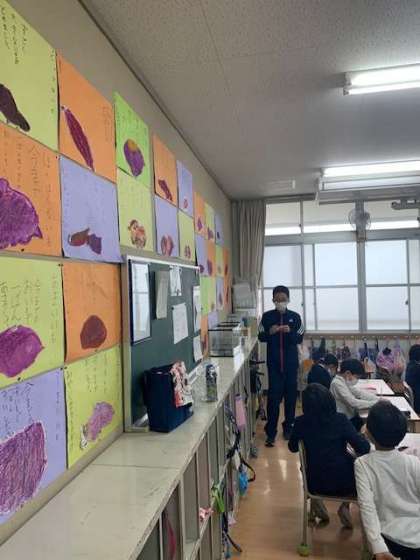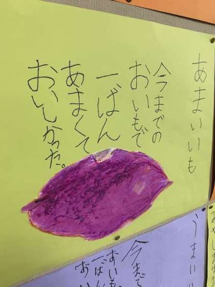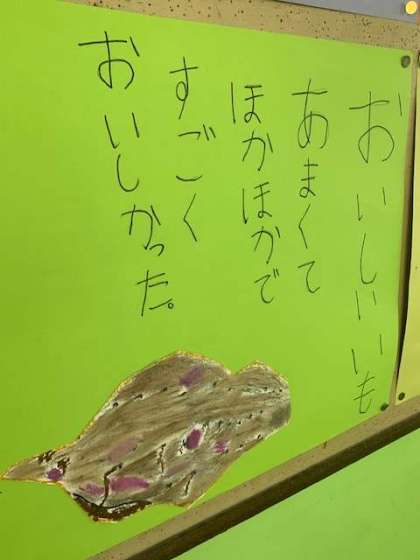 生活科でみんなで掘ったさつまいもをよく見て書きました。