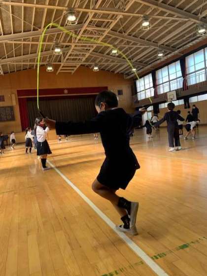 夢中でなわとびをしている子どもたち、「見てみて!」と自分の得意な跳び方を披露してくれます。