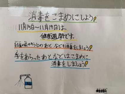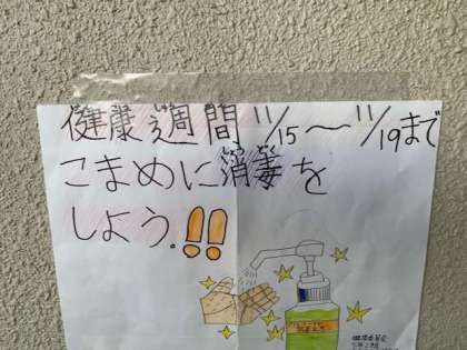 今週は、健康習慣です。常日頃から、衛生面には気をつけていますが、今週はさらに健康委員会を中心に手洗いや消毒に気をつけています。
