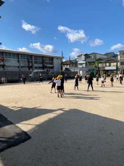 寒さに負けず、元気に学級でドッジボールです。今日は担任の先生と特別支援教育サポーターが一緒に入って取り組んでいます。