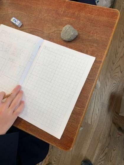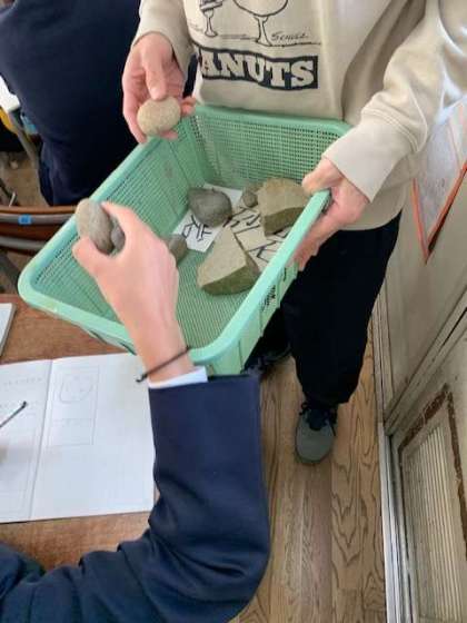 礫岩、砂岩、泥岩と地層の成り立ちの学習です。今日は実際に、実物を手にとって違いを感じてもらいます。