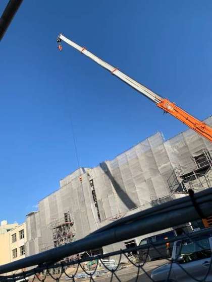 外から見ると大きな外壁が、そびえ建っていますが、中はまだまだ作業中です。