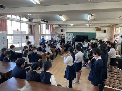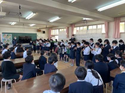 5年1組の「キリマンジャロ」の合奏を、5年2組の児童に披露しました。