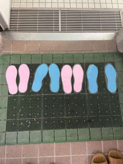 昨日の委員会活動の時間に、環境委員会の児童が、トイレ入り口にスリッパのマークを設置してくれました。