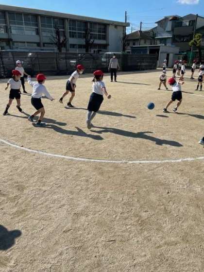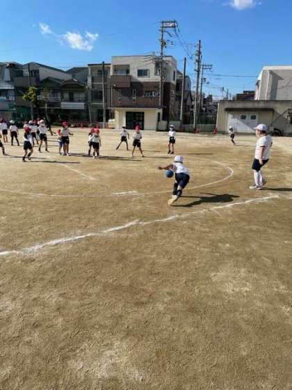 運動場では、「ドッジボールころがし当てゲーム」を楽しんでいました。
