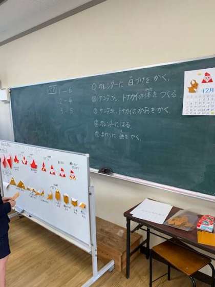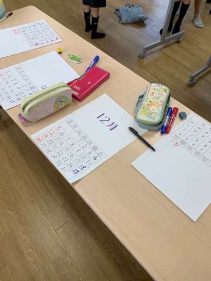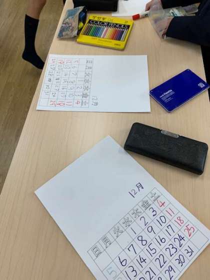 学習室のみんなが一堂に集まって一人一人の12月のカレンダーを作ります。