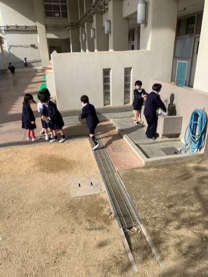 休み時間になると手洗い時間です。1年生は、温かい場所で、密を避けて手洗いをしに行きます。