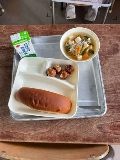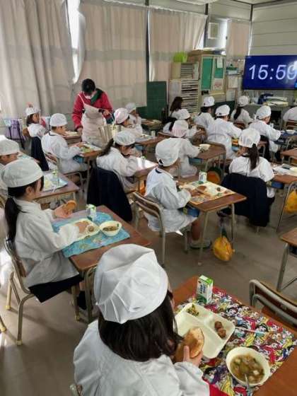感染症対策で行うようになった黙食に、1年生もしっかり取り組んでいます。