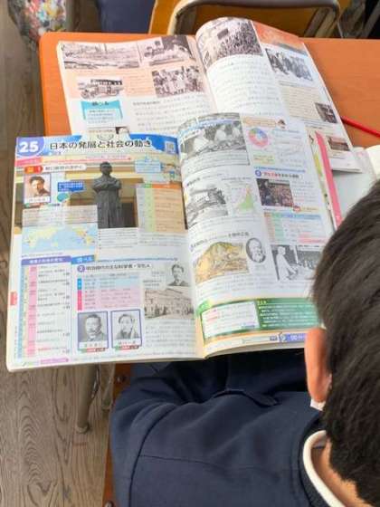 日本の発展と社会の動きと戦後の日本の流れを学んでいます。