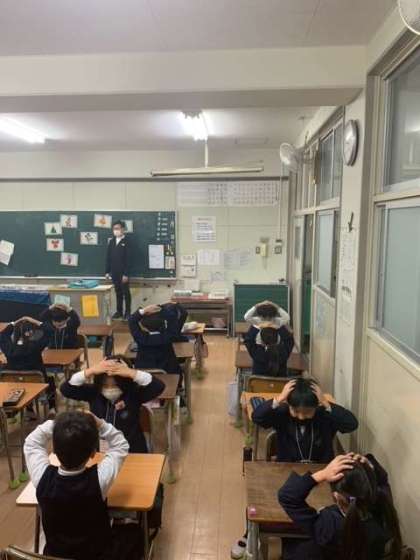 クリスマスに使える外国語を発音しながら、手を頭の上におき、キーワードが発せられたら消しゴムを取ると言ったゲームです。