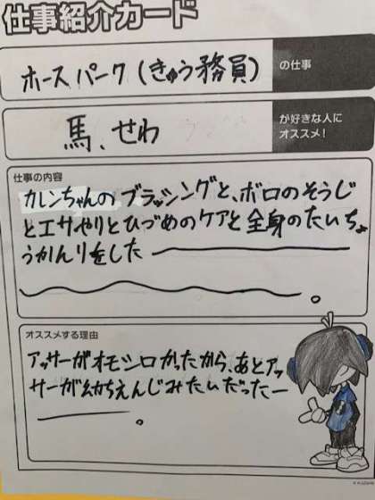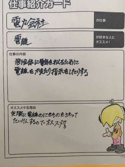 キッザニアに行って、将来のお仕事について学習してきました。今回は、知ってきた仕事をみんなに紹介しています。