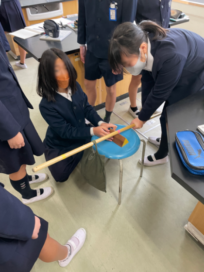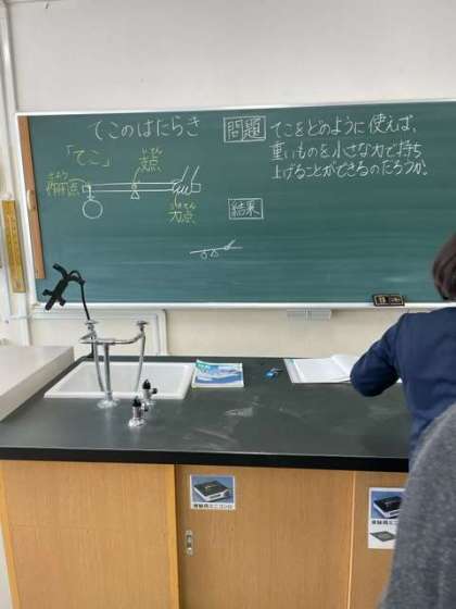 てこの原理を使って、重いものを楽に持ち上げる方法を見つける活動でした。