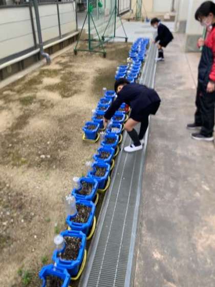 子どもたちも自分の鉢植えに、大事そうに水やりをしています。もっともっと大きく育って、春には立派をな花を咲かせてほしいと、思います。