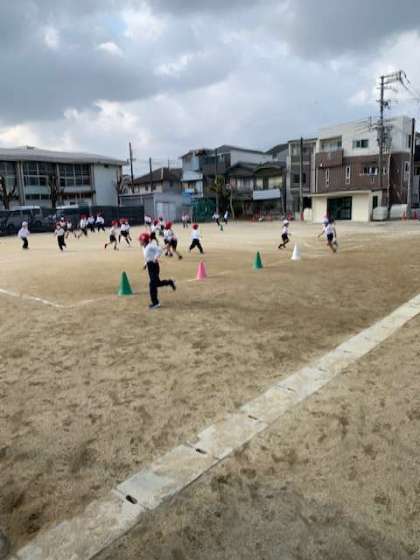 寒いですが、太陽の光があたると気持ち暖かく感じます。子どもたちは、元気です。走り回っています。