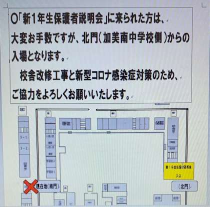 〇場所:講堂(入場は、就学時健康診断と同様に、【南門】からとなります。)
