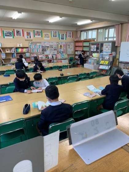 担任の先生が「絵本の読み聞かせ」を行っていました。