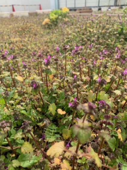 小さいですが、きれいな紫色の花が咲き乱れています。なんの花でしょうか??これを調べることも学びです。