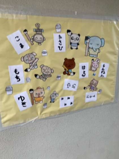 一月の掲示物です。かわいらしい一年が始まりそうです。