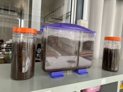 保護者の方のご厚意により、一年生にではカブトムシを育てています。
