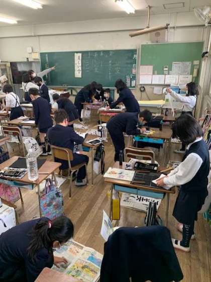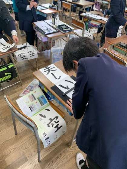 書写は、文字通り書き写すということです。しっかり見本を見て、気持ちを落ち着かせて取り組みます。