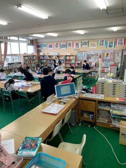 今日も図書室は、大盛況です。何よりもきれいで、楽しいしかけがたくさんあります。