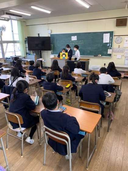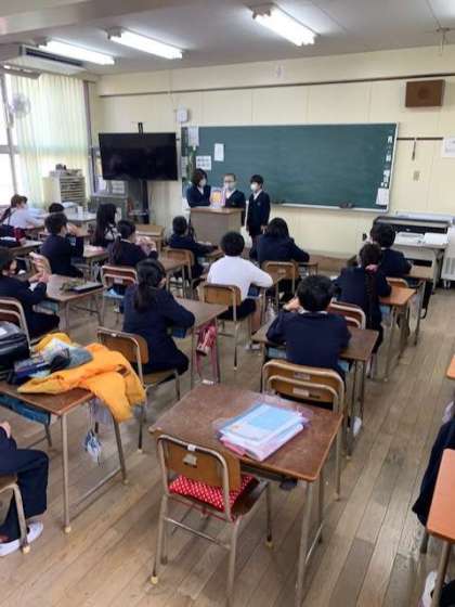 今朝は朝の学習時間に図書委員会が、低学年の教室に「本のよみきかせ」を行いました。