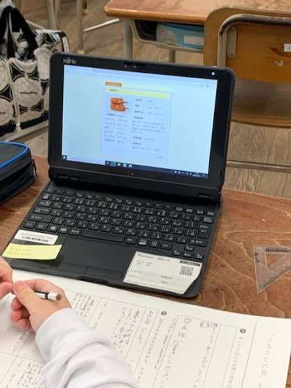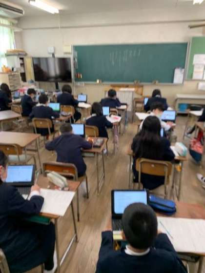 「ふるさとの食を伝えよう」と今日はタブレットで調べたことをワークシートに書き写していきます。