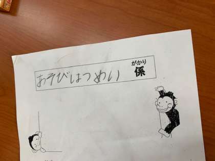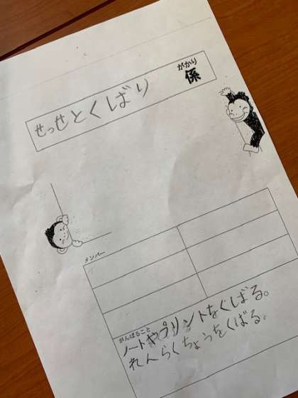 あるクラスを覗くと係活動を決めていました。今日は名前と自分達の行う活動内容についての確認です。