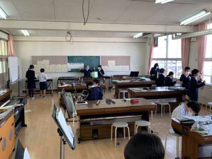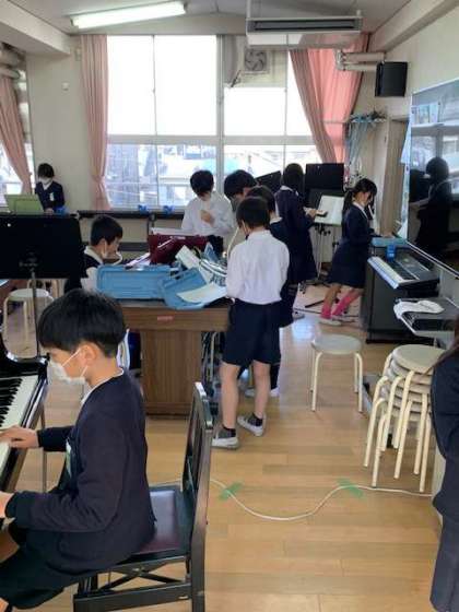 合奏の練習にパートごとに、取り組んでいます。楽譜にドレミ…を書き込んでいる子もいて、各々が自分の役割を果たそうとパートごとに協力しています。
