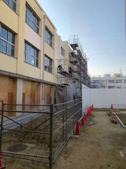 中に入れるのは、来年度です。まだ来年度の1学期中は運動場の工事が続きます。