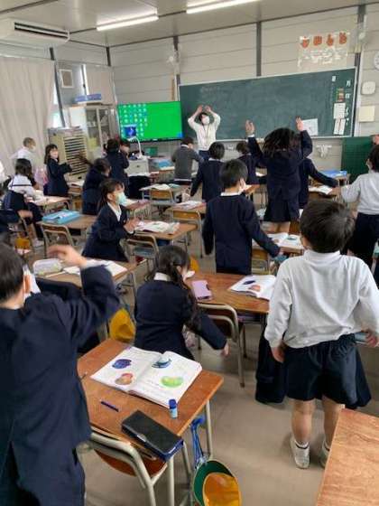 鍵盤の後は、身体を動かしてわらべうたに挑戦です。歌詞の内容に合わせてふりつけを披露してくれました。