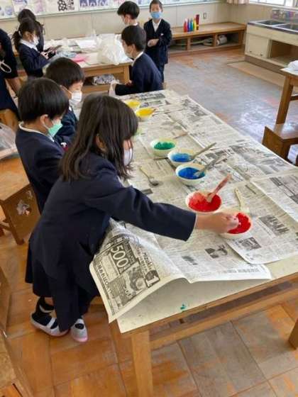 一人一人が好きな材料を使って、自由な色で表現するので、楽しい作品になりそうです。
