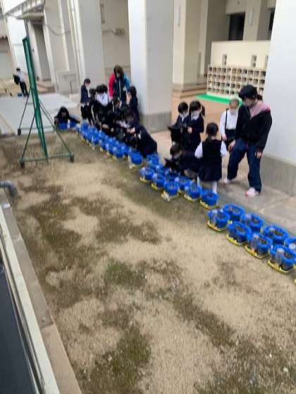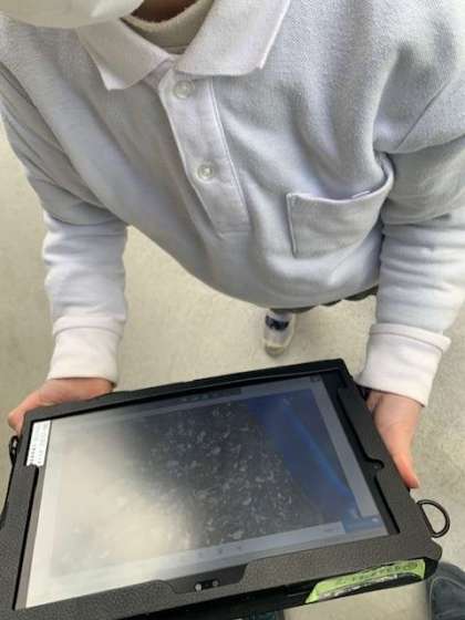 「チューリップの成長はどうかなっ??」自分のタブレットで記録をしていきます。