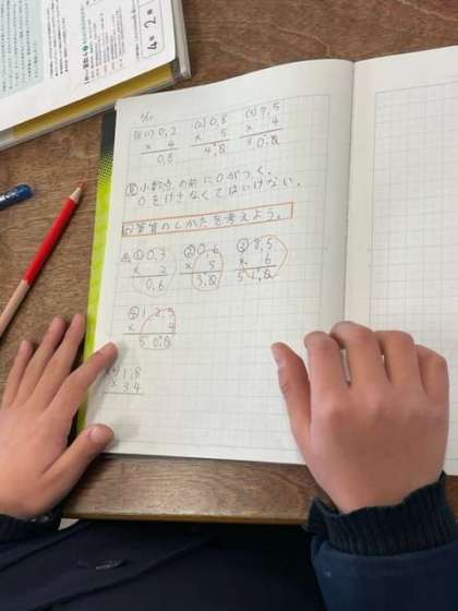 小数のかけ算(筆算)の学習です。