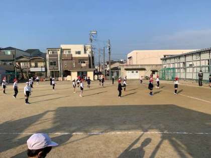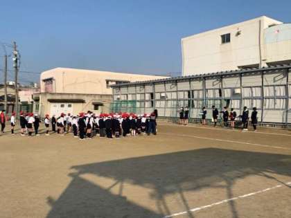 今朝は、1年生がなわとび大会に挑戦です。前回し跳びでどれだけ跳べるかを競います。