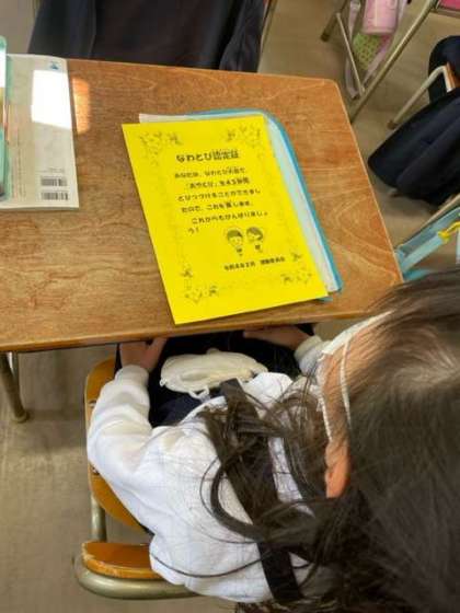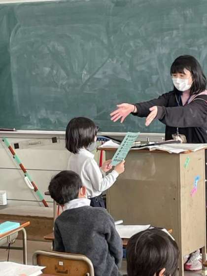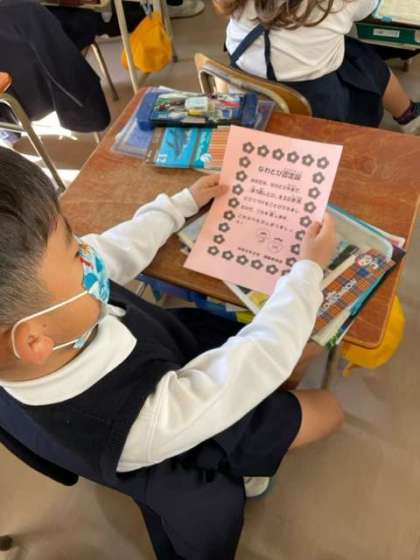 1年生が「なわとび大会」の認定証を教室でもらいました。