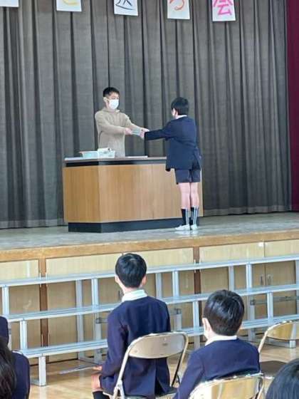 自分の座席から壇上で証書を受け取って、自席まで戻る練習です。
