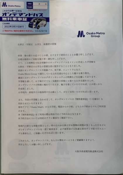 オンデマンドバス無料乗車証等の配布について