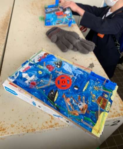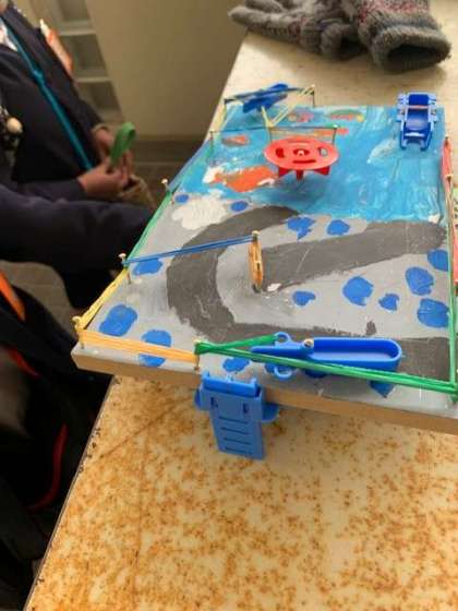 廊下で3年生と会うと、図画工作科の作品を持ち帰っていました。