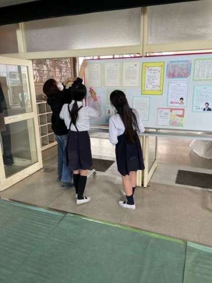 本日の5時間目に、5年生の児童と教職員で、明日に行われる「卒業式」の前日準備を行いました。