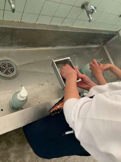 この1年間、お世話になった教室や廊下等に感謝の気持ちで大掃除です。