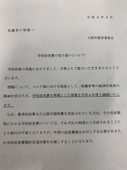 令和4年度も引き続き、学校給食費を無償とした措置をとることになりましたので、お知らせいたします。