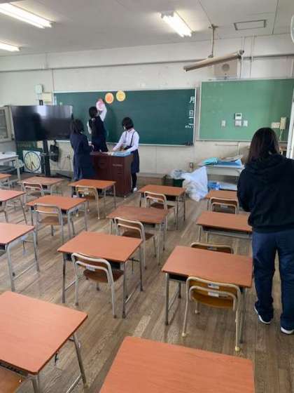 今朝は、新6年生が明日の入学式準備を行ってくれました。