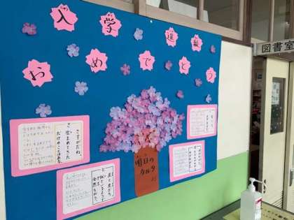 学校図書館司書の方からの本を通じたメッセージが、掲示されています。
