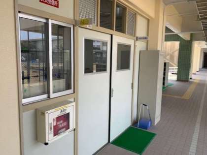 一階の管理作業員部屋の前に設置しました。