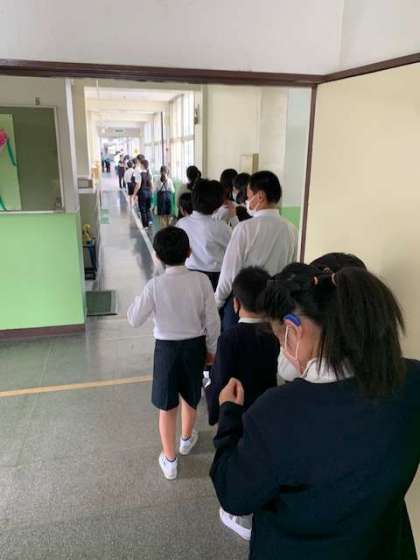 講堂では、2年生から5年生が待っています。