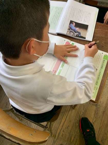 道徳の授業です。教材から学んだことを文字にして整理していきます。