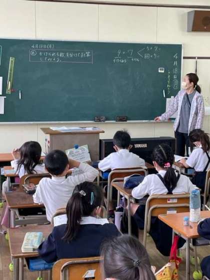 9×7 は 5×7と4×7に分けて計算する事ができると言う内容の学習でした。
